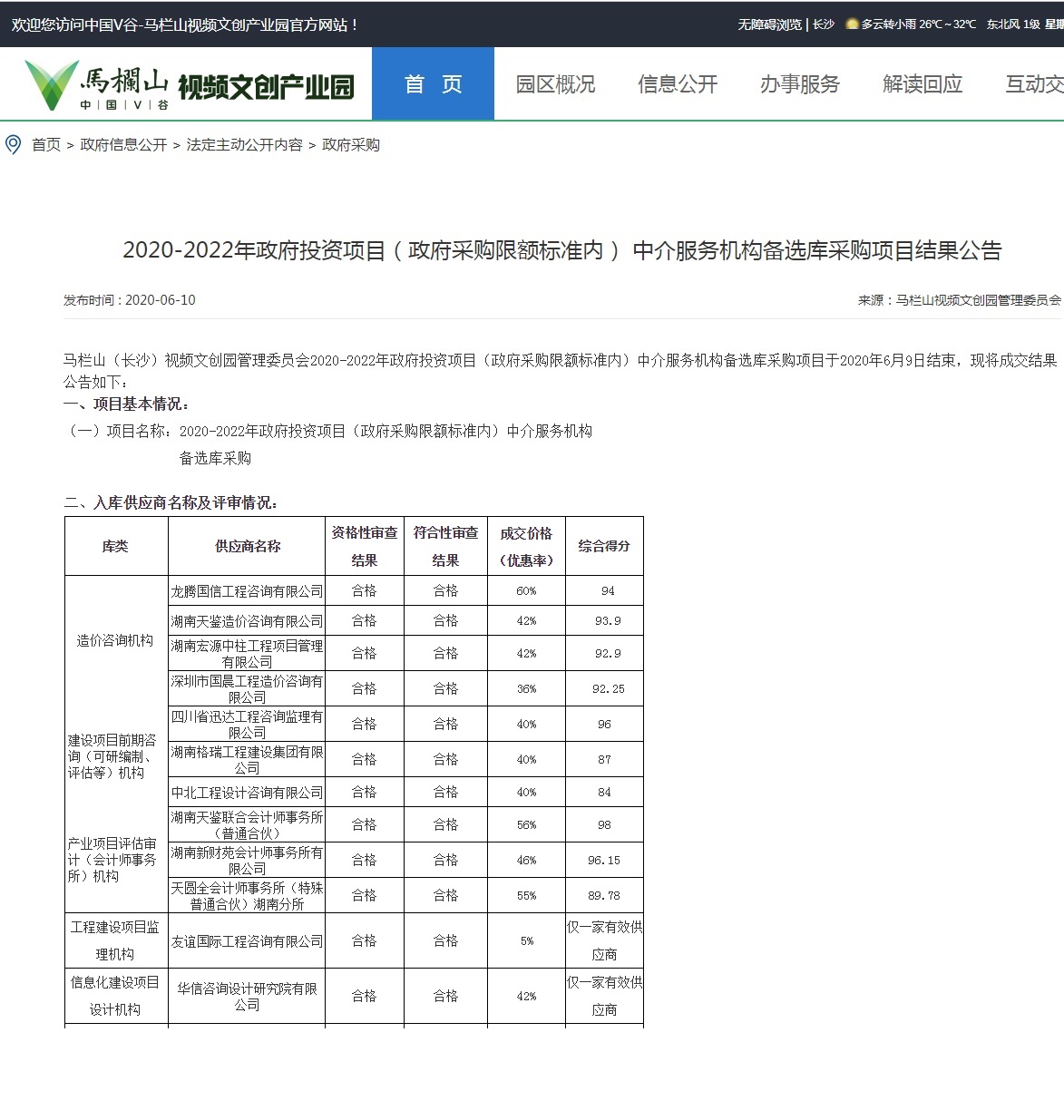 恭賀本公司中標(biāo)馬欄山文創(chuàng)園政府投資項(xiàng)目工程造價(jià)中介機(jī)構(gòu)庫(kù)