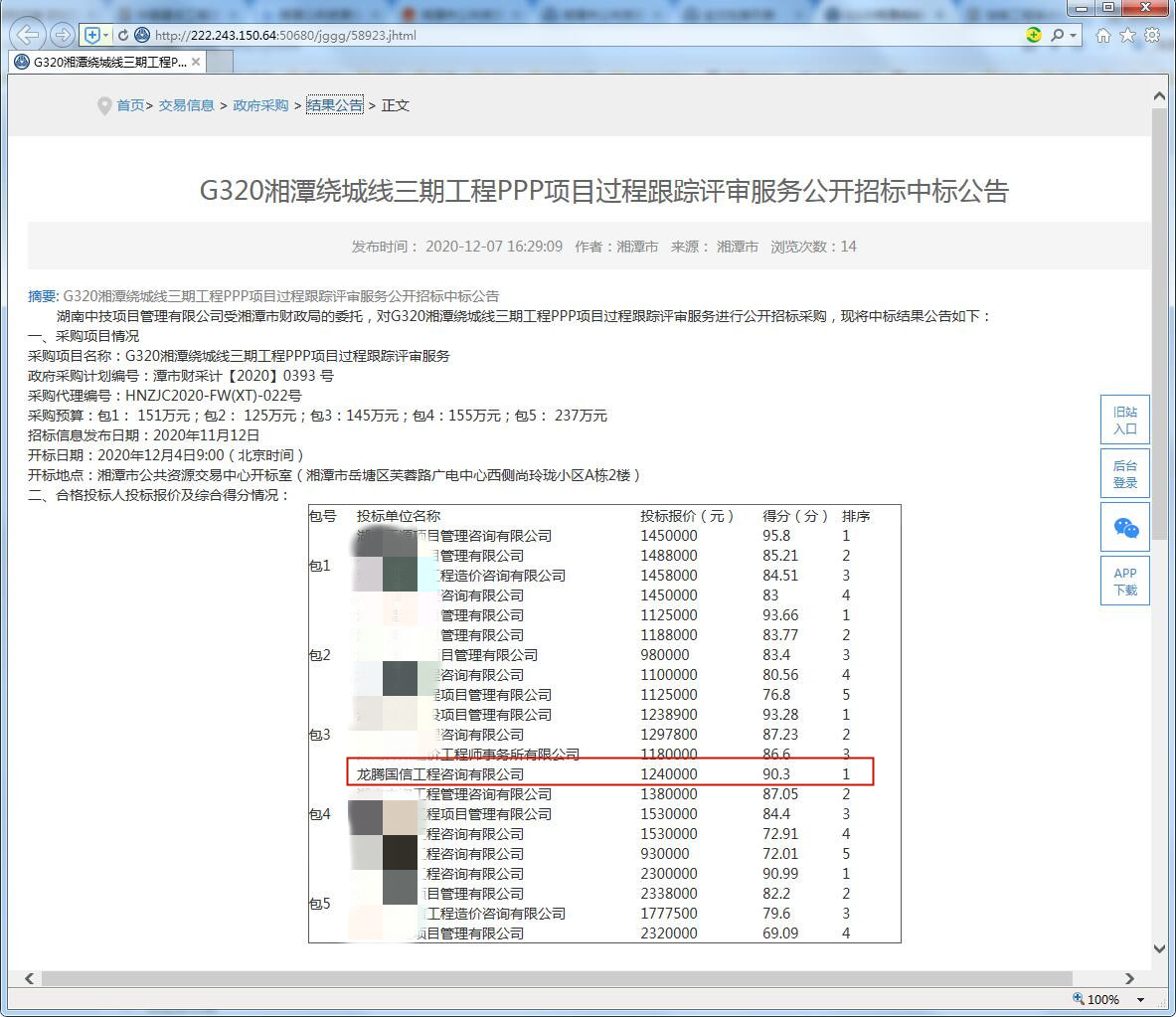 恭賀我司中標G320湘潭繞城線三期工程PPP項目過程跟蹤評審服務(wù)