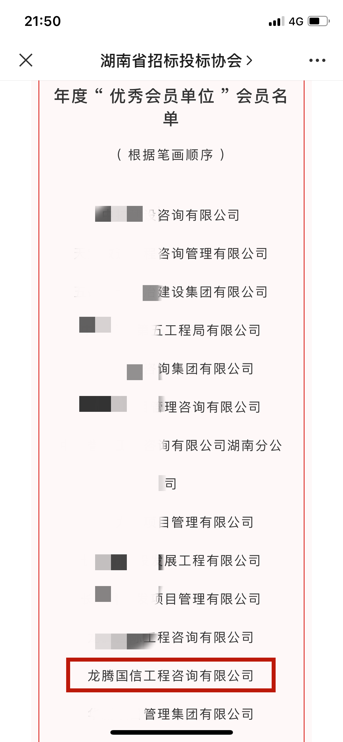 近日,在湖南省招標(biāo)投標(biāo)協(xié)會組織的表彰通告中,龍騰國信工程咨詢有限公司榮獲“2020年度優(yōu)秀會員單位”。同時(shí),公司李超先生獲協(xié)會“優(yōu)秀特約聯(lián)絡(luò)員”稱號。