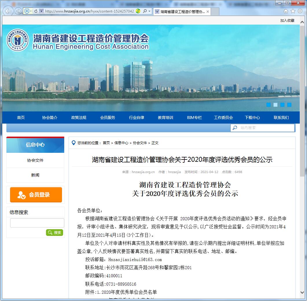 根據(jù)湖南省建設工程造價管理協(xié)會《關(guān)于開展2020年度評選優(yōu)秀會員活動的通知》要求,經(jīng)會員申報,評審小組評選、集體研究決定,我單位被評為“2020年度優(yōu)秀單位”。