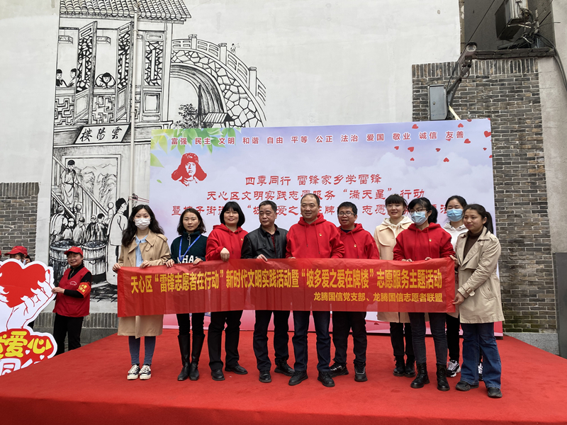 龍騰國信黨支部、龍騰國信志愿者聯(lián)盟今日在長沙市天心區(qū)坡子街街道西牌樓社區(qū)百年老巷胥樂園前坪,作為協(xié)辦單位,舉行了《天心區(qū)文明實踐志愿服務“滿天星”行動暨坡子街街道“坡多愛之愛在牌樓”志愿服務主題活動》。