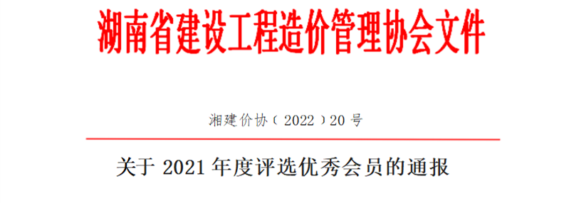 【喜報】龍騰國信榮獲湖南省建設(shè)工程造價管理協(xié)會“2021年度優(yōu)秀單位”