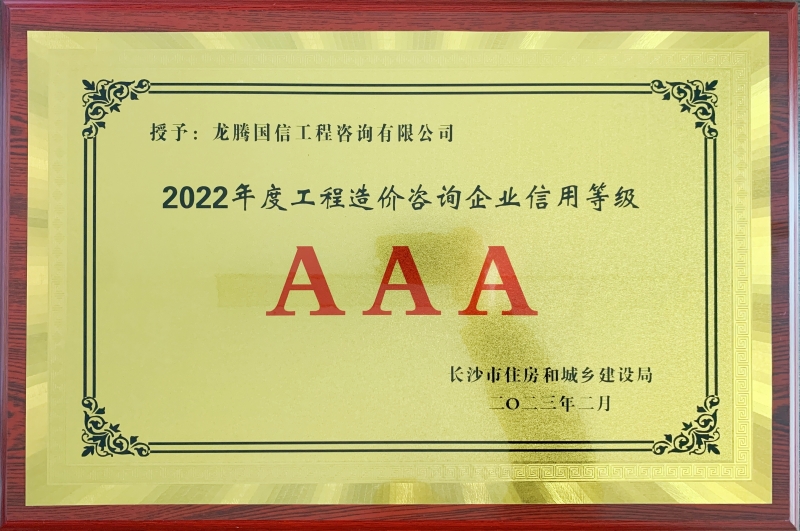 【喜報(bào)】龍騰國信再獲長沙市住房和城鄉(xiāng)建設(shè)局2022年度AAA級信用企業(yè)