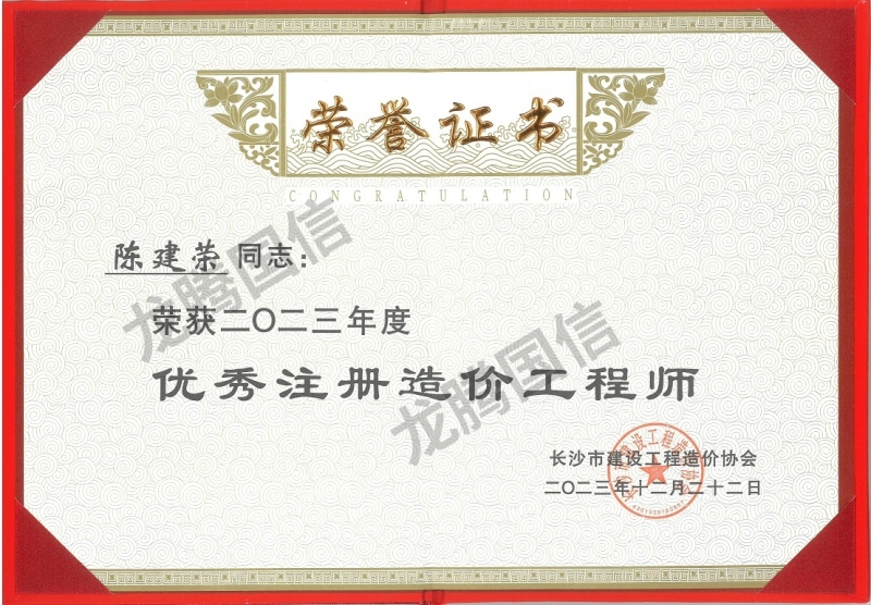 2023年,長沙市建設(shè)工程造價協(xié)會在各上級部門的領(lǐng)導(dǎo)和指導(dǎo)下,經(jīng)全體會員的共同努力,我市工程造價行業(yè)發(fā)展穩(wěn)步推進(jìn),行業(yè)力量不斷凝聚,造價咨詢服務(wù)取得了新的成績,涌現(xiàn)出一批成績顯著的單位,為表彰先進(jìn),我單位被授予“工程造價咨詢優(yōu)秀單位”;我單位陳建榮(中共黨員)被授予“優(yōu)秀注冊造價工程師”。