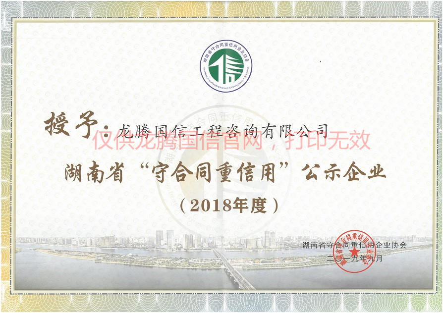 恭賀我公司榮獲湖南省2018年度守合同重信用單位榮譽(yù)