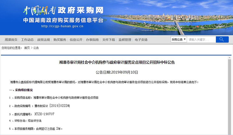 1、采購項目名稱:湘潭市審計局社會中介機構參與政府審計服務定點項目