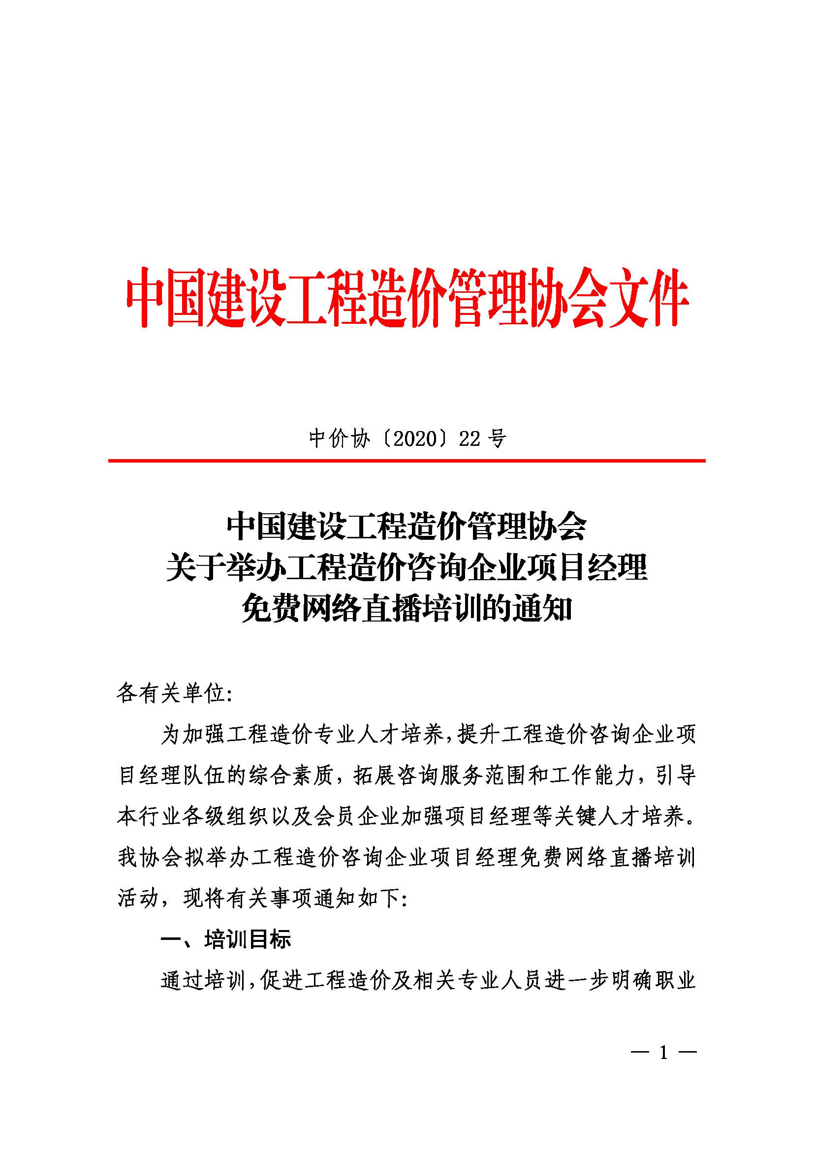 轉(zhuǎn)發(fā)中國(guó)建設(shè)工程造價(jià)管理協(xié)會(huì)關(guān)于舉辦工程造價(jià)咨詢企業(yè)項(xiàng)目經(jīng)理免費(fèi)網(wǎng)絡(luò)直播培訓(xùn)的通知